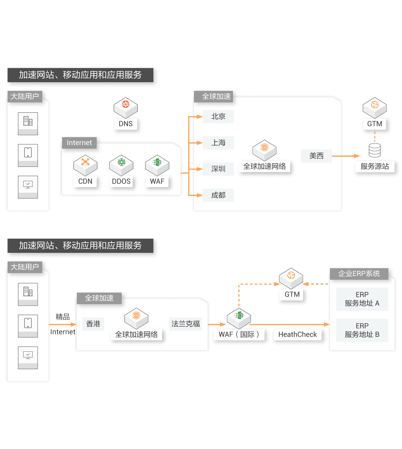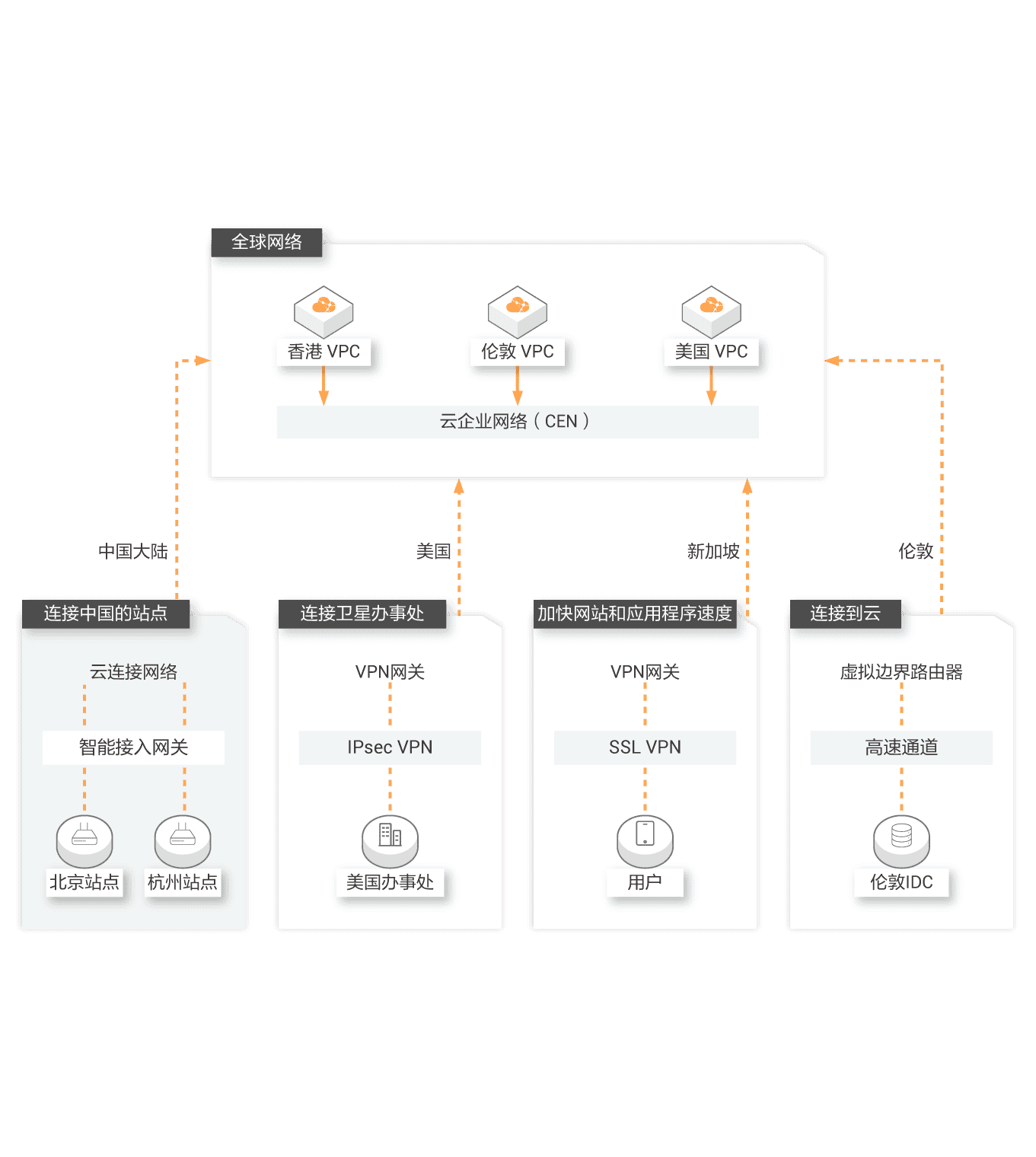 全球应用加速方案面向各行各业应用诉求,一站式提供加速网络和应用,提高网络性能,确保应用安全。 阿里云的智能广域网基础设施部署遍及全球,采用集中式 IT 管理,控制企业间的网络连接,实现网络服务全球范围就近接入和跨地域部署,提升服务可用性和性能。