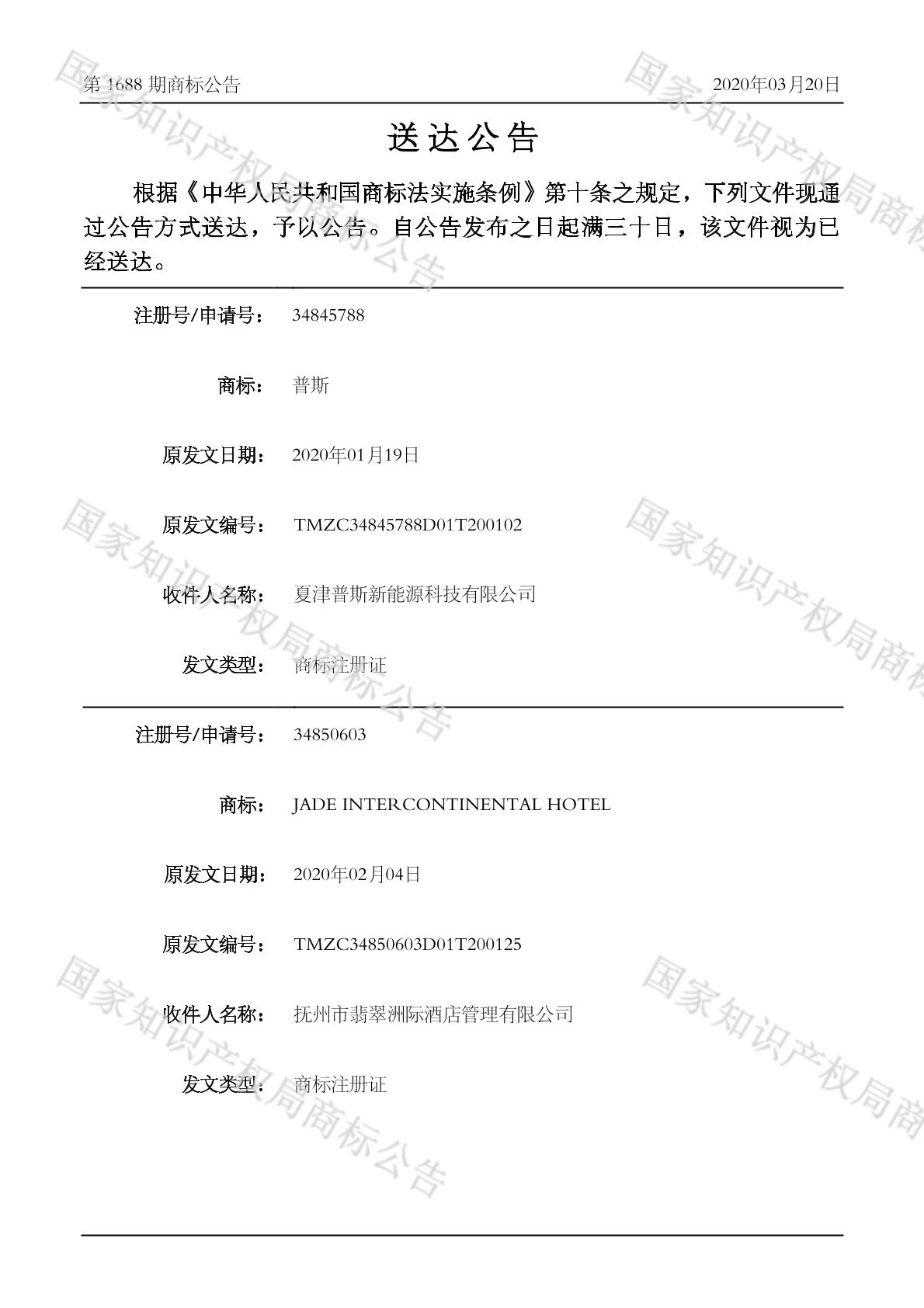 2020-03-20 商标注册申请 | 排版送达公告(商标注册证)