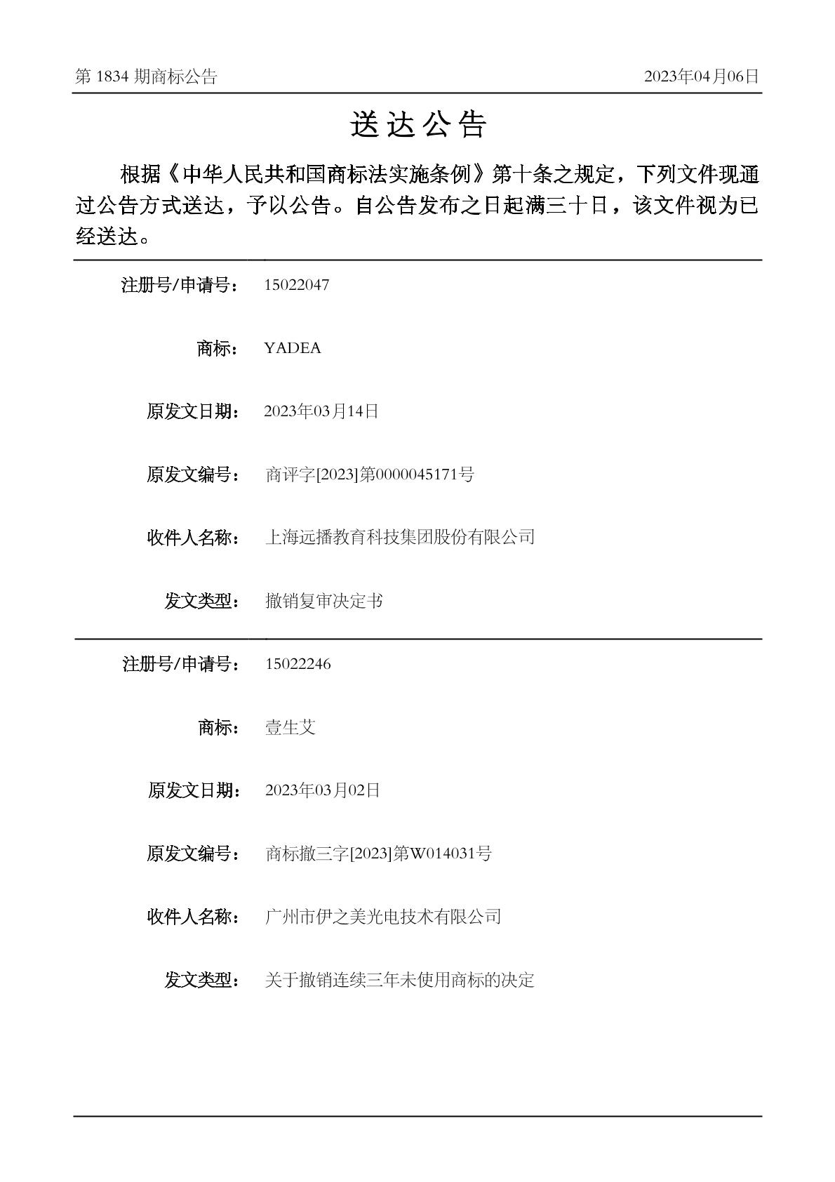 2023-04-06 撤销注册商标复审 | 排版送达公告