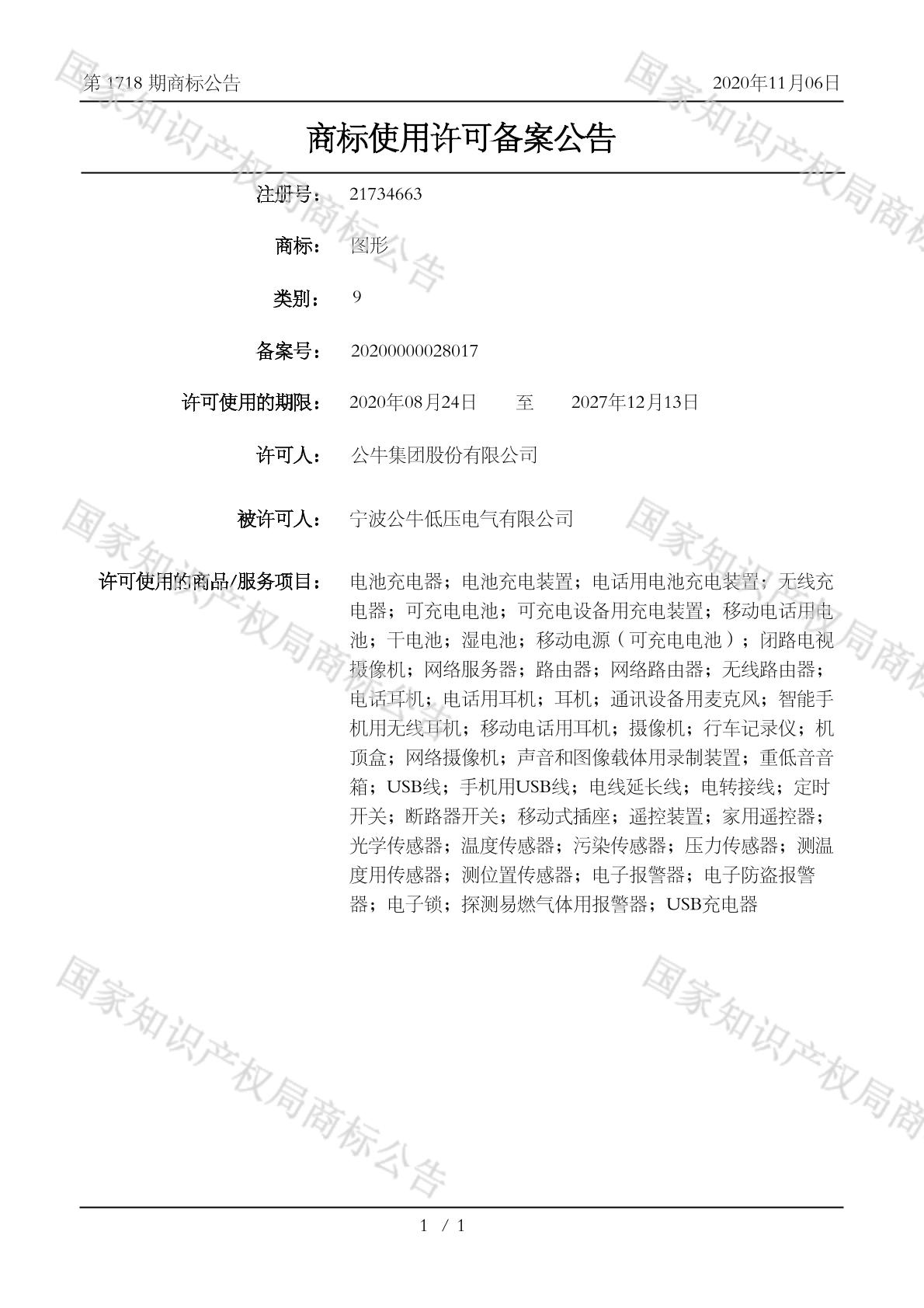 0901-网络服务器;0907-无线路由器;0907-移动电话用电池;0907-网络路由器;0907-路由器;0908-声音和图像载体用录制装置;0908-摄像机;0908-智能手机用无线耳机;0908-机顶盒;0908-电话用耳机;0908-电话耳机;0908-移动电话用耳机;0908-网络摄像机;0908-耳机;0908-行车记录仪;0908-通讯设备用麦克风;0908-重低音音箱;0908-闭路电视摄像机;0912-USB线;0912-手机用USB线;0912-电线延长线;0912-电转接线;0913-光学传感器;0913-压力传感器;0913-定时开关;0913-家用遥控器;0913-断路器开关;0913-污染传感器;0913-测位置传感器;0913-测温度用传感器;0913-温度传感器;0913-移动式插座;0913-遥控装置;0920-探测易燃气体用报警器;0920-电子报警器;0920-电子锁;0920-电子防盗报警器;0922-USB充电器;0922-可充电电池;0922-可充电设备用充电装置;0922-干电池;0922-无线充电器;0922-湿电池;0922-电池充电器;0922-电池充电装置;0922-电话用电池充电装置;0922-移动电源(可充电电池) - 1567