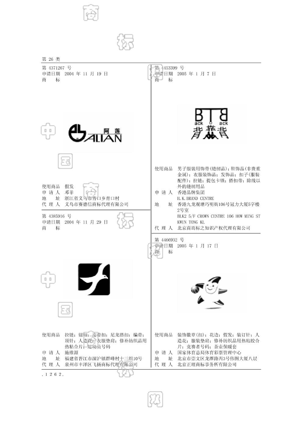 2601-男子服装用饰带(缝纫品);2602-发饰品;2602-衣服装饰品;2602-鞋饰品(非贵重金属);2603-扣子(服装配件);2603-拉链;2603-提包卡锁;2603-搭扣带;2603-皮带扣;2605-除线以外的缝纫用品 - 1141