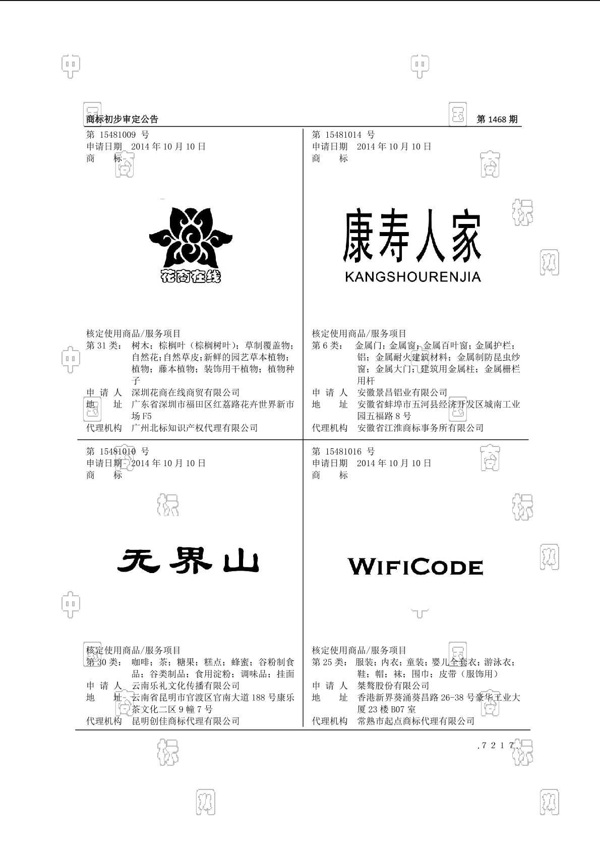 2014-11-20 商标注册申请 | 等待受理通知书发文
