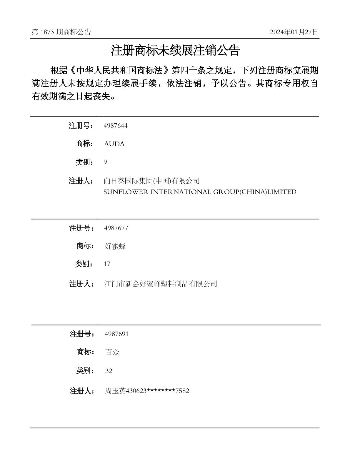 2024-01-29 期满未续展注销商标 | 排版未续展注销公告