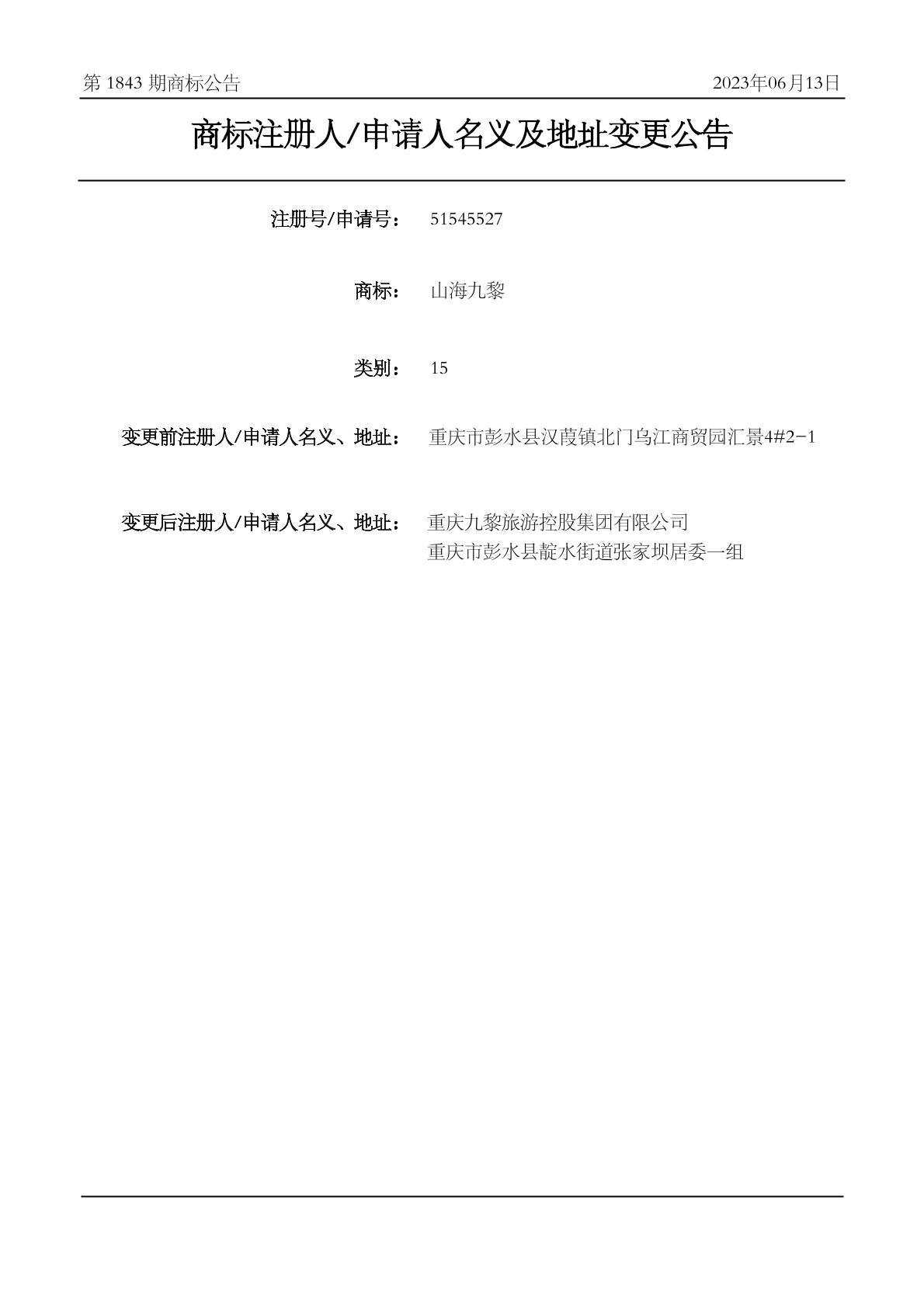 - 重庆九黎旅游控股集团有限公司