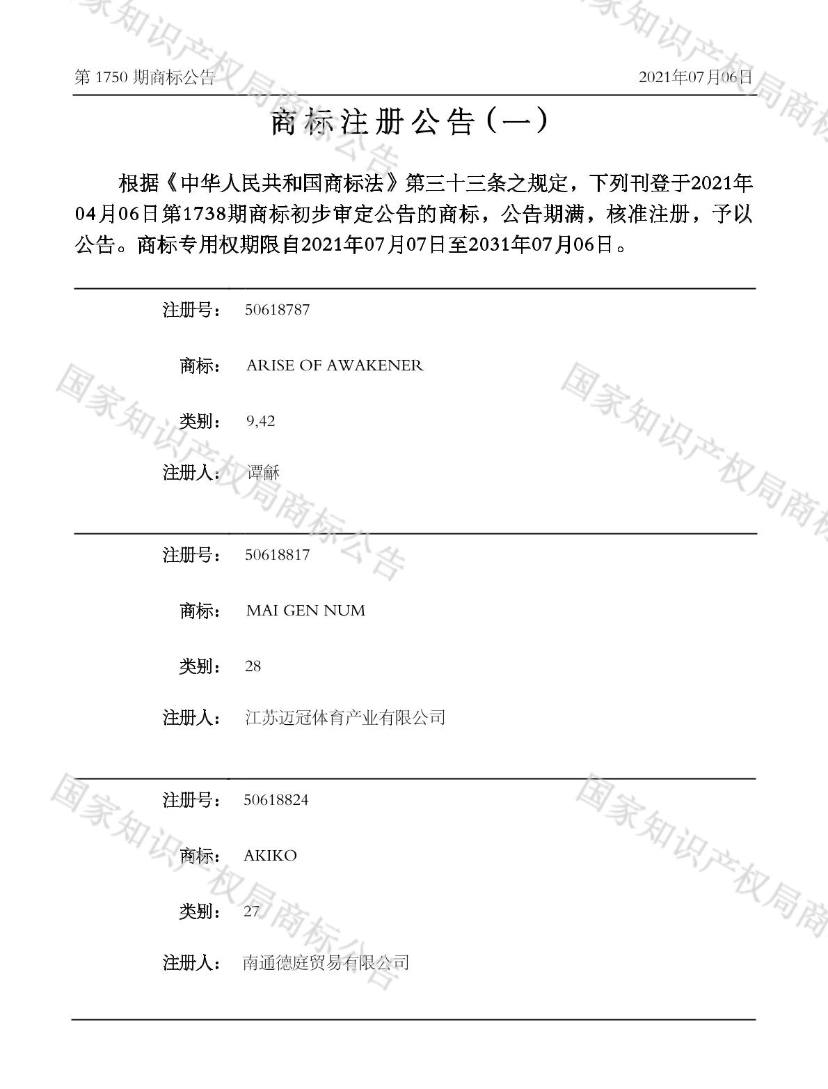 【AKIKO】商标详情