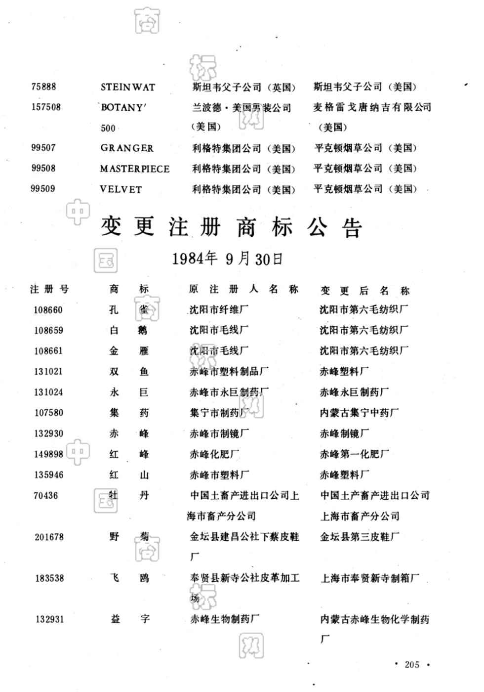 商标注册人申请人名义及地址变更公告 1984-09-30 第102期 查看公告