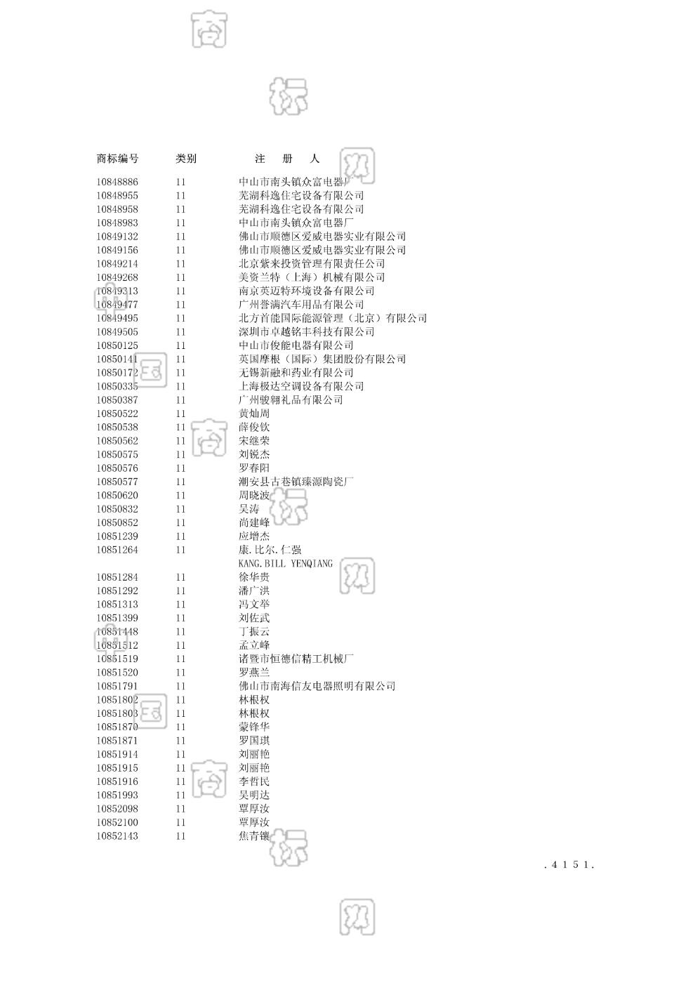 1101-照明器械及装置;1101-运载工具用灯;1103-照明用提灯;1104-炉子;1104-野餐烧烤用火山岩石;1105-冷冻设备和机器;1106-干燥设备;1107-加热装置;1108-管道(卫生设备部件);1108-装饰喷泉;1109-卫生器械和设备;1110-便携式一次性消毒小袋;1110-污水处理设备;1111-炉子(取暖器具);1112-打火机;1113-聚合反应设备 - 1357
