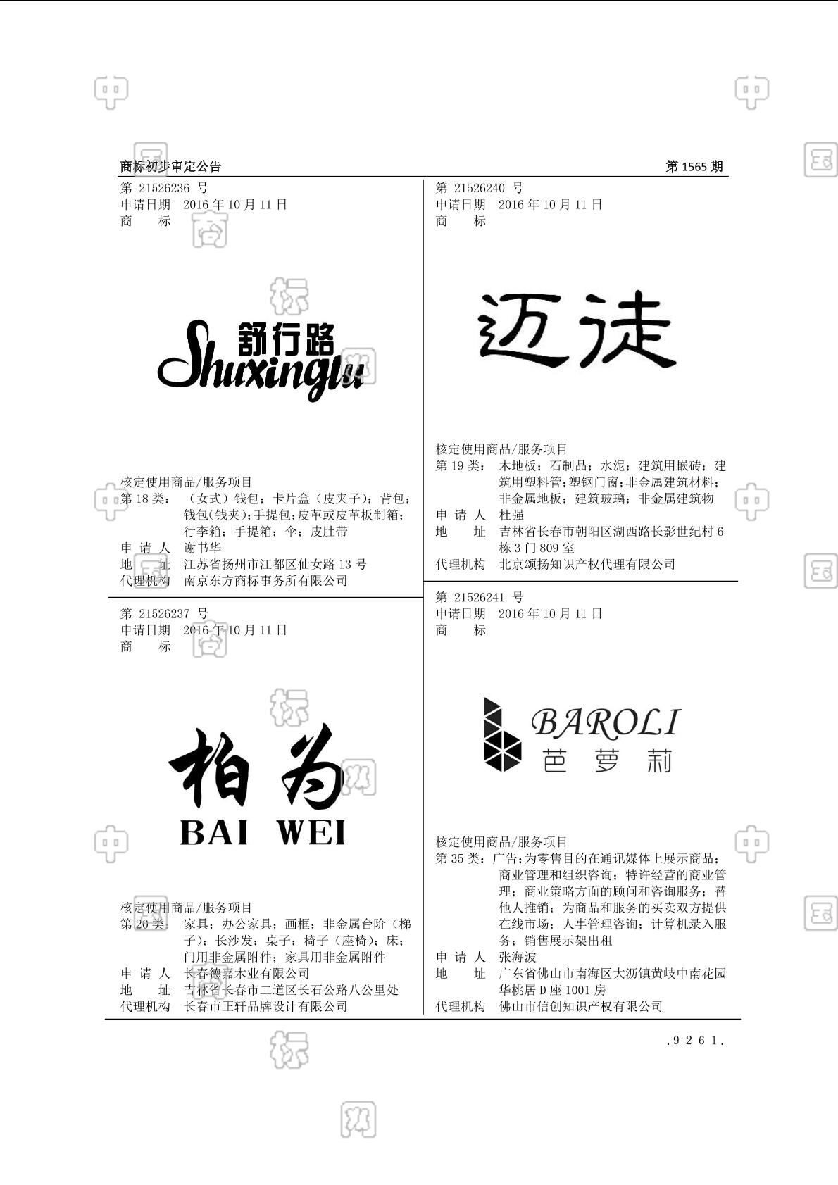 2016-11-26 商标注册申请 | 等待受理通知书发文