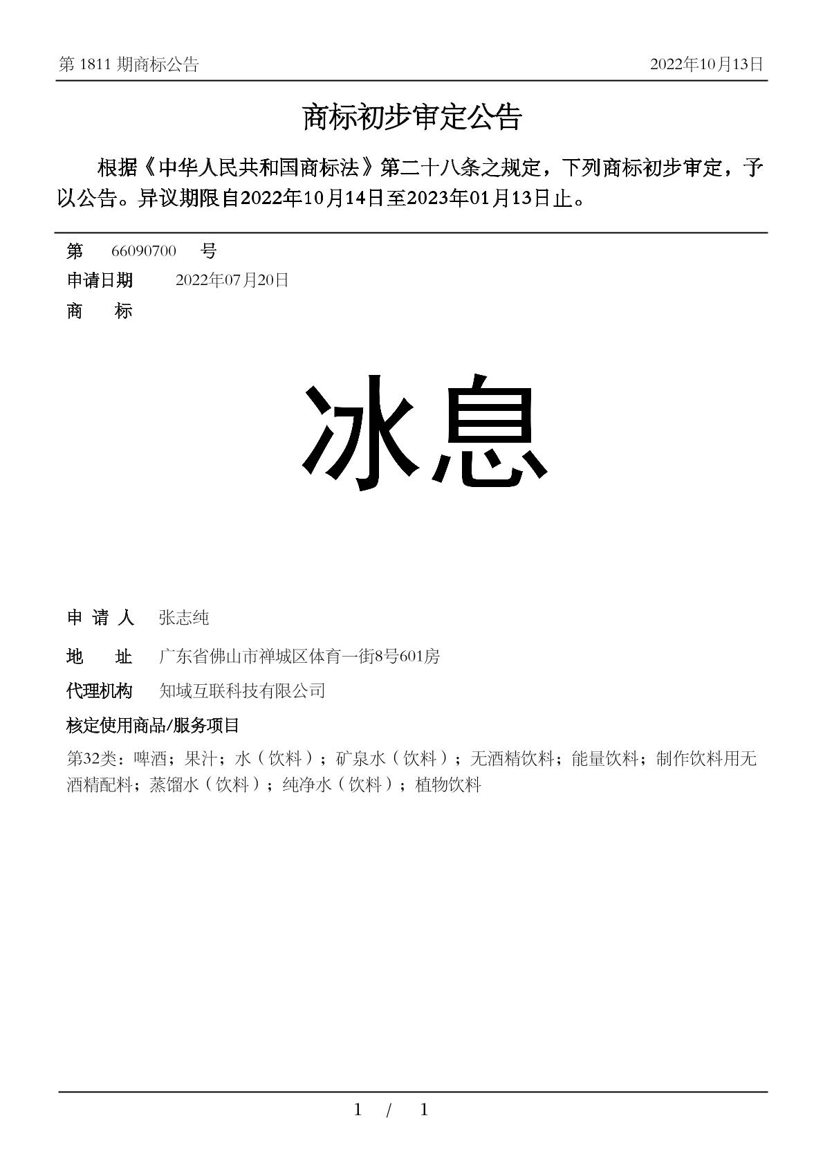 【冰息】商标详情