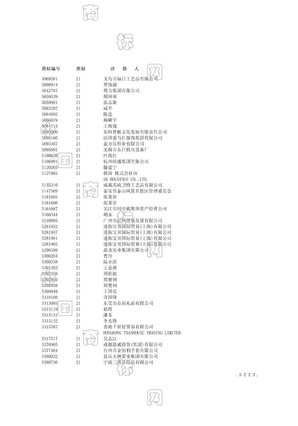 2101-非贵重金属厨房用具;2102-日用玻璃器皿(包括杯、盘、壶、缸);2103-陶器;2104-瓷器装饰品;2105-饮用器皿;2107-梳;2110-化妆用具;2111-保温瓶;2112-清洁器具(手工操作);2113-水晶(玻璃制品) - 1182