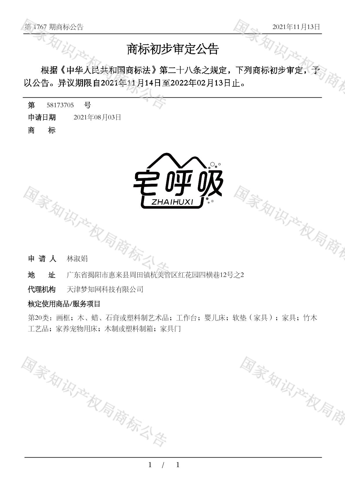 2001-婴儿床;2001-家具;2002-木制或塑料制箱;2003-工作台;2004-画框;2005-竹木工艺品;2006-木、蜡、石膏或塑料制艺术品;2009-家养宠物用床;2012-家具门;2013-软垫(家具) - 1767