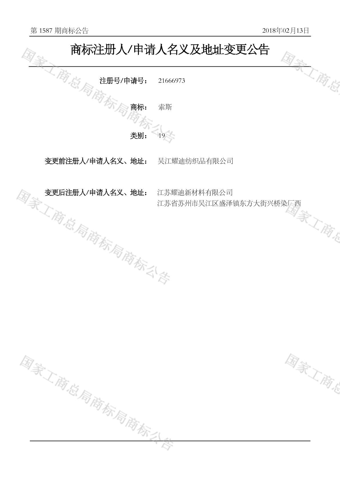 2018-02-08 变更商标申请人/注册人名义/地址 | 核准证明打印发送