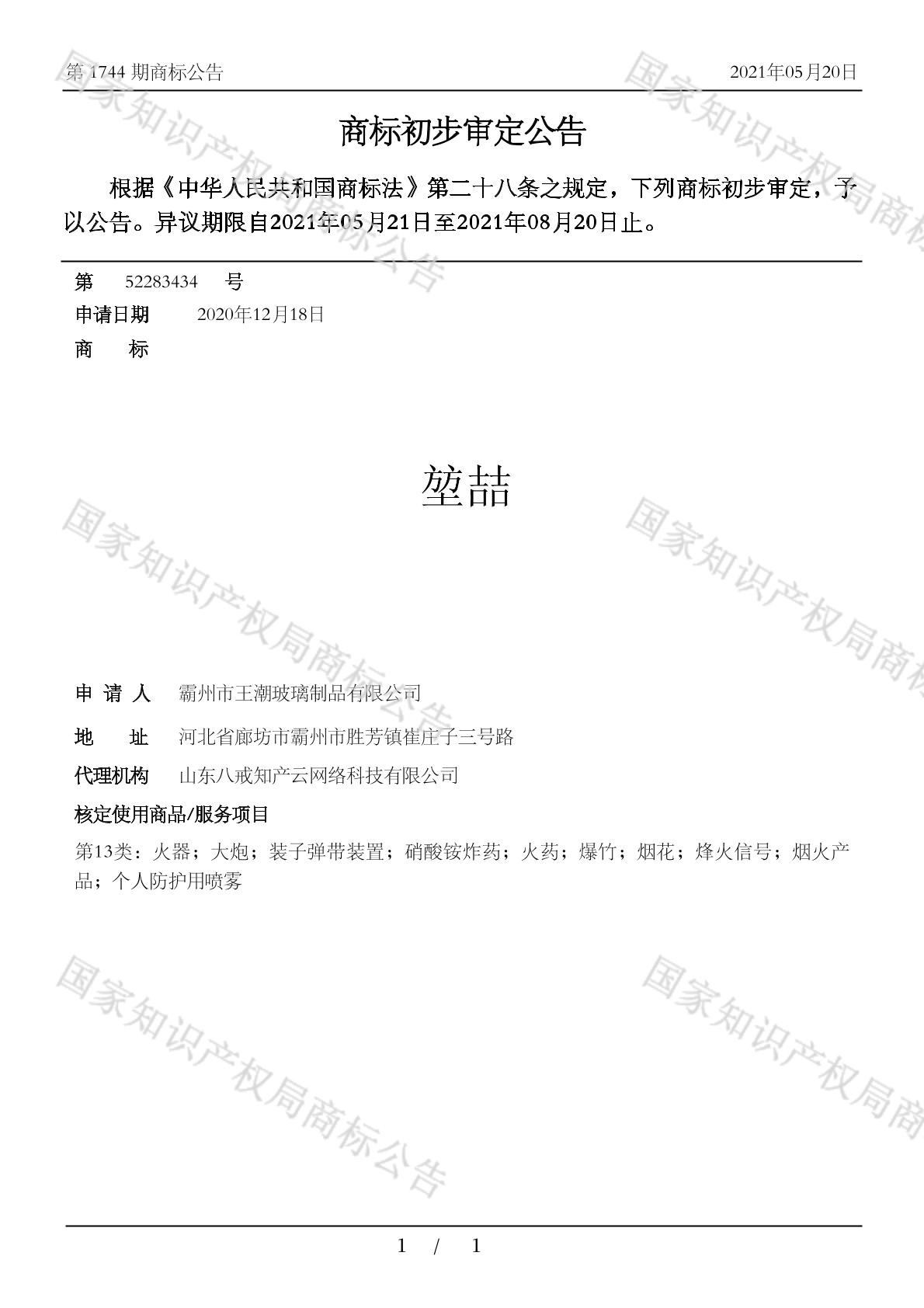 1301-大炮;1301-火器;1301-装子弹带装置;1302-火药;1302-硝酸铵炸药;1303-烟火产品;1303-烟花;1303-烽火信号;1303-爆竹;1304-个人防护用喷雾 - 1744