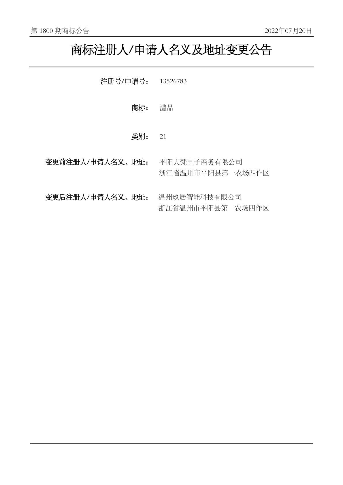 商标注册人/申请人名义及地址变更公告 2022-07-20 第1800期 查看公告