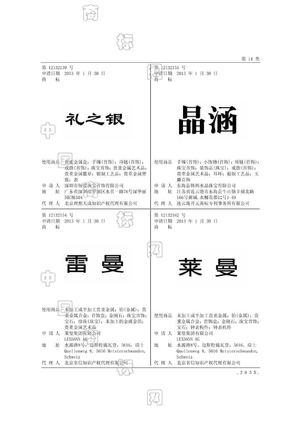 1402-贵重金属盒;1403-戒指(首饰);1403-手镯(首饰);1403-珠宝首饰;1403-贵重金属塑像;1403-贵重金属徽章;1403-贵重金属艺术品;1403-银制工艺品;1403-项链(首饰);1404-表 - 1404