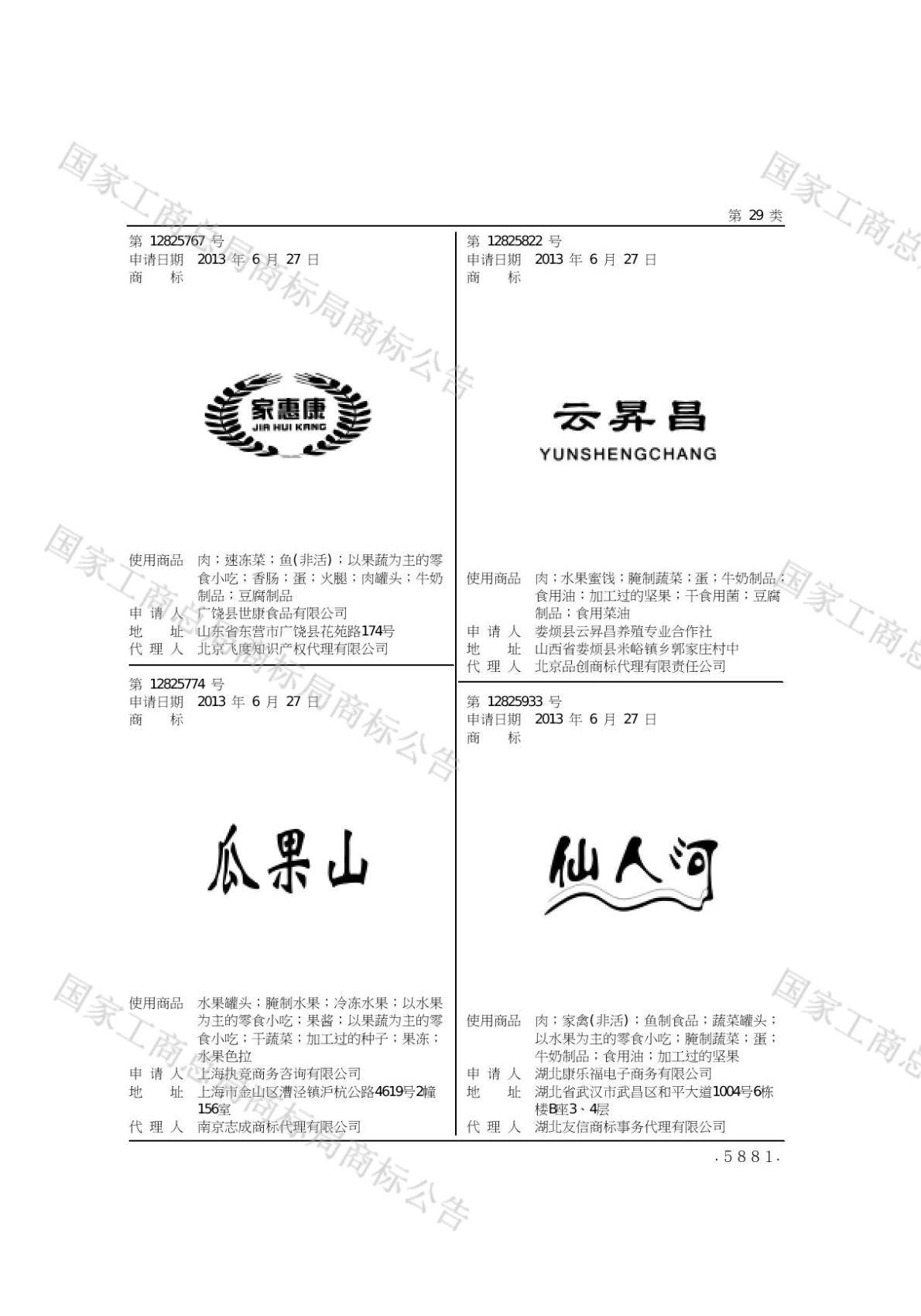 2903-水果罐头;2904-以果蔬为主的零食小吃;2904-以水果为主的零食小吃;2904-冷冻水果;2904-果酱;2904-腌制水果;2905-干蔬菜;2909-水果色拉;2910-果冻;2911-以果蔬为主的零食小吃;2911-加工过的种子 - 1417