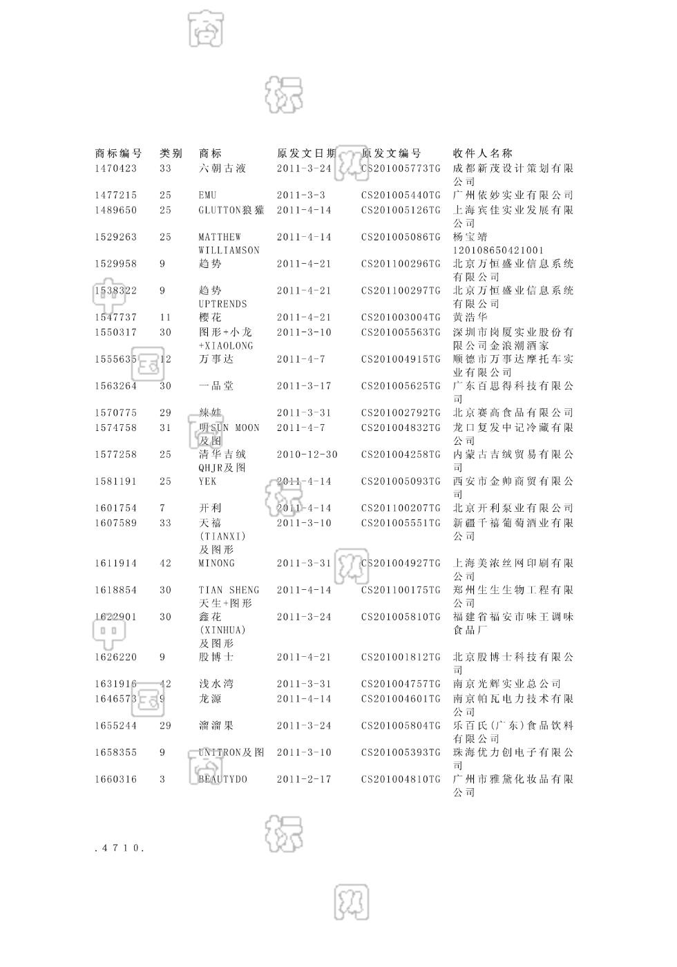 2011-03-14 撤销连续三年停止使用注册商标 | 打印受理通知