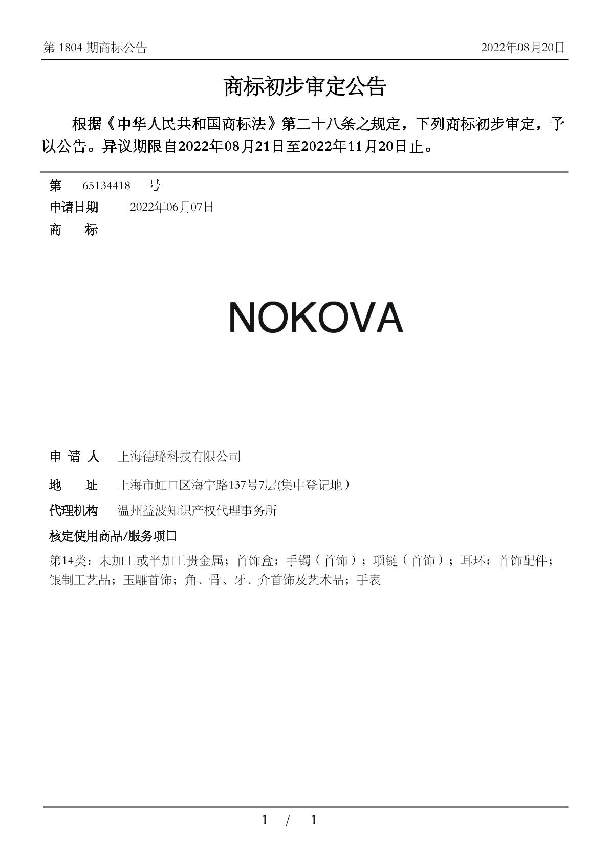 1401-未加工或半加工贵金属;1402-首饰盒;1403-手镯(首饰);1403-玉雕首饰;1403-耳环;1403-角、骨、牙、介首饰及艺术品;1403-银制工艺品;1403-项链(首饰);1403-首饰配件;1404-手表 - 1804