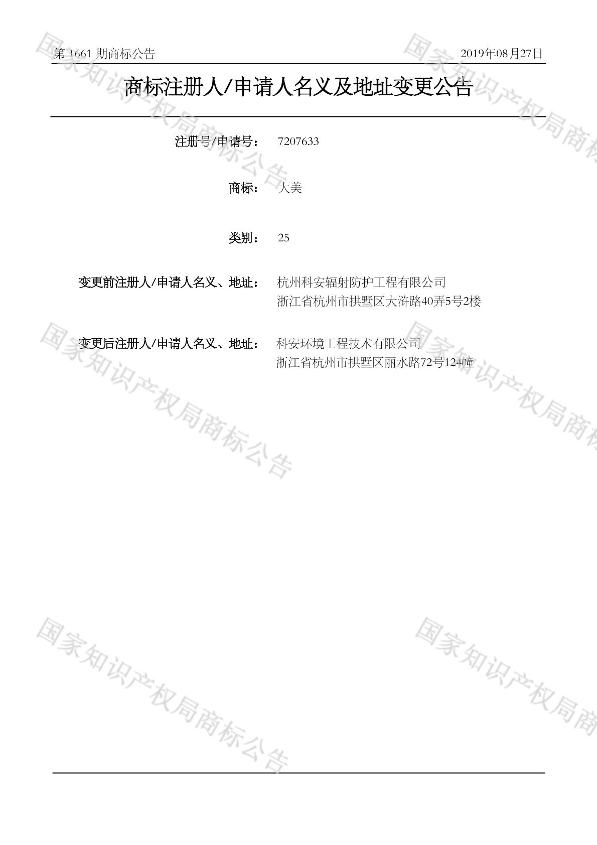2019-08-15 变更商标申请人/注册人名义/地址 | 核准证明打印发送