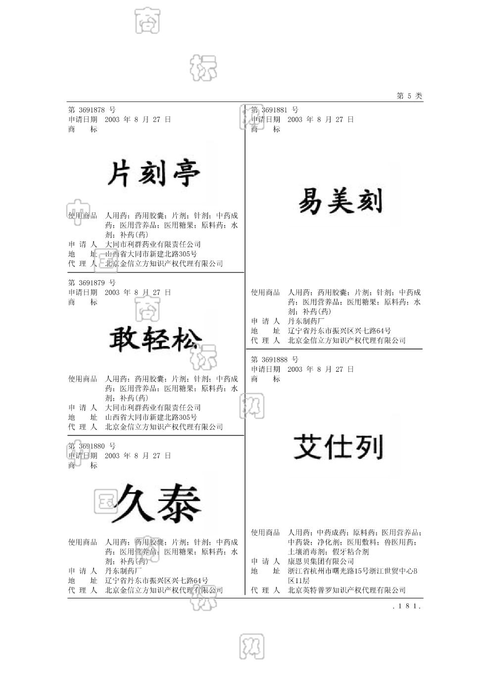 0501-中药成药;0501-人用药;0501-原料药;0502-医用营养品;0503-净化剂;0504-兽医用药;0505-土壤消毒剂;0506-中药袋;0506-医用敷料;0507-假牙粘合剂 - 994
