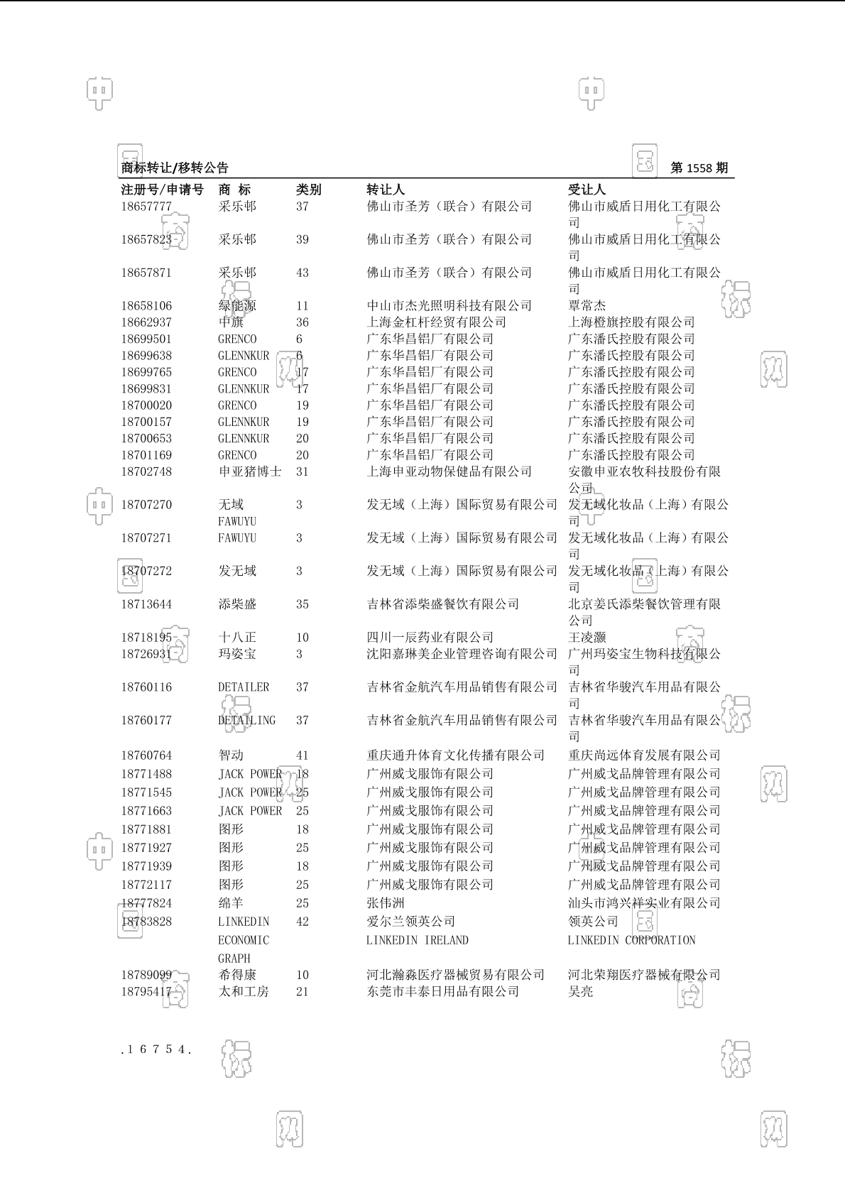 商标转让移转公告 2017-07-06 第1558期 查看公告