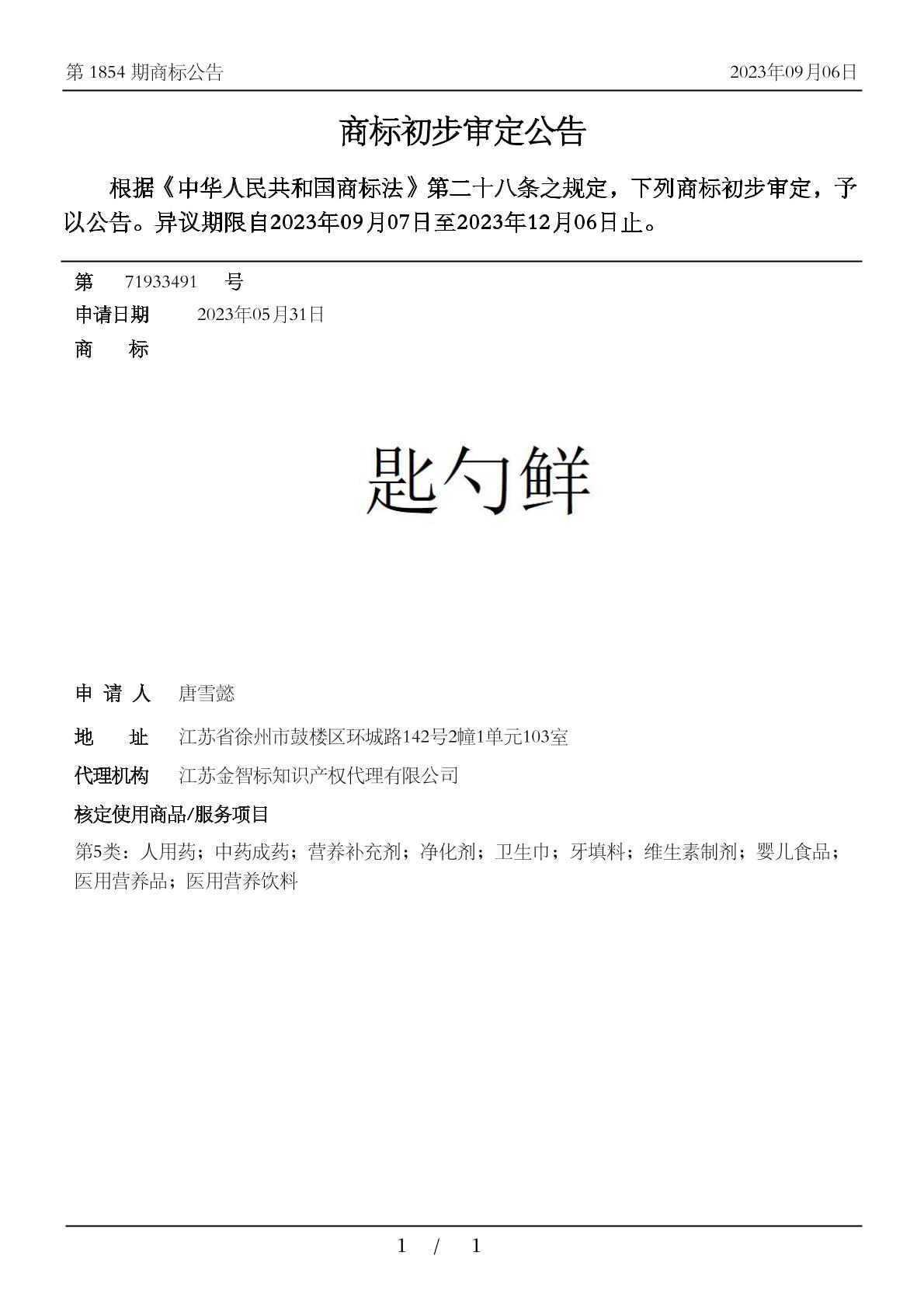 0501-中药成药;0501-人用药;0501-维生素制剂;0502-医用营养品;0502-医用营养饮料;0502-婴儿食品;0502-营养补充剂;0503-净化剂;0506-卫生巾;0507-牙填料 - 1854