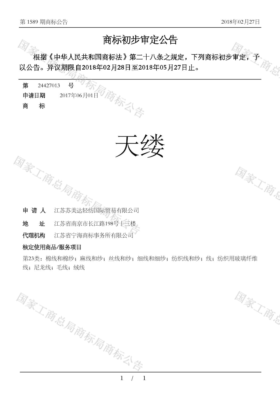 【天缕】商标详情