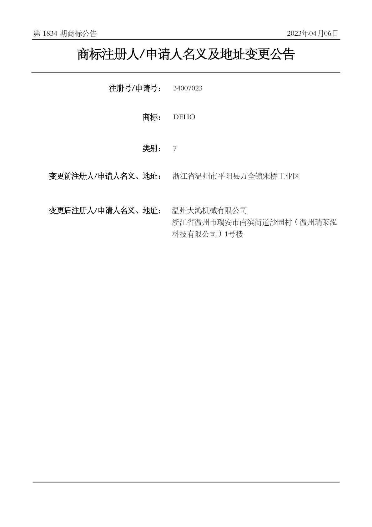 2023-03-24 变更商标申请人/注册人名义/地址 | 核准证明打印发送
