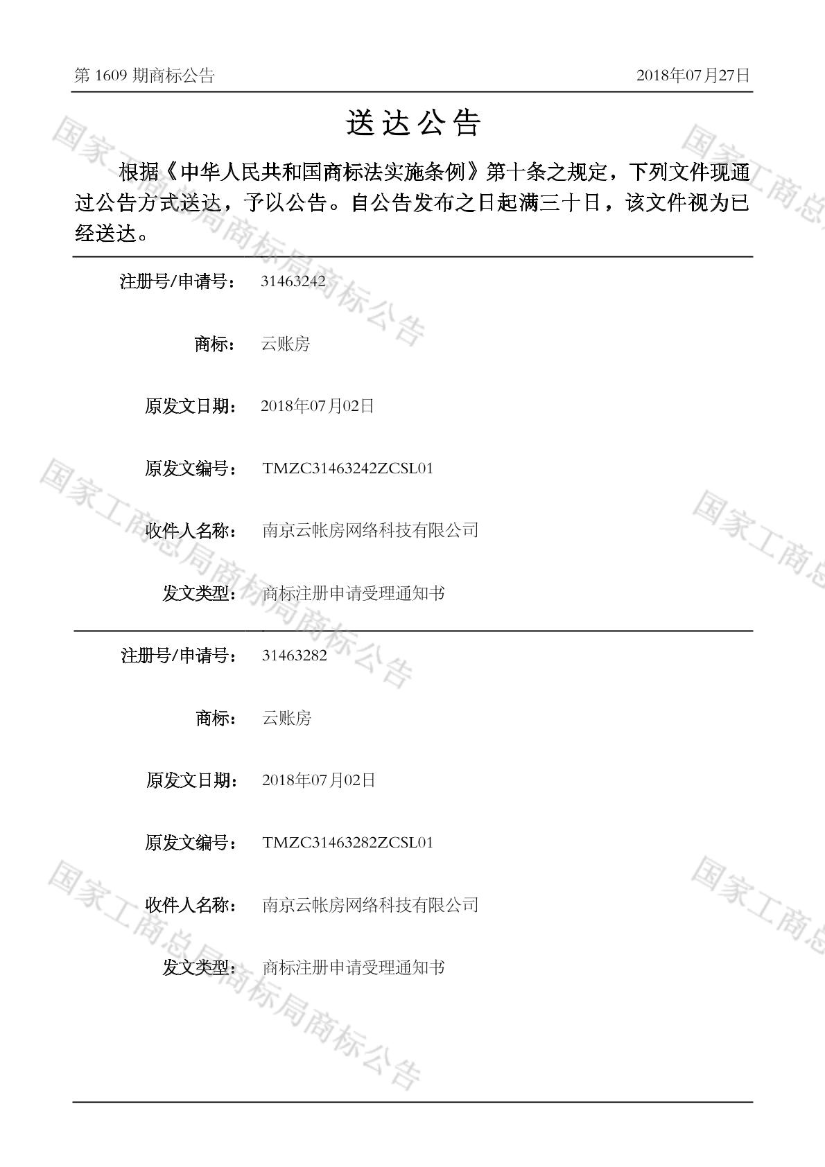 送达公告 2018-07-27 第1609期 查看公告