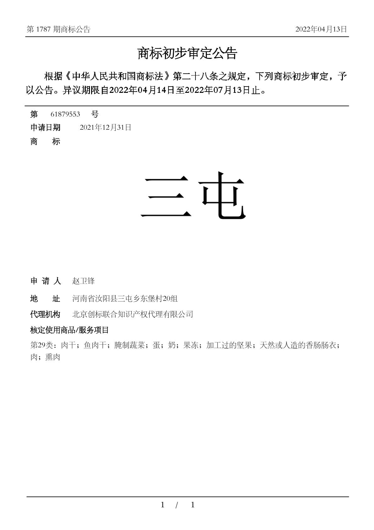 2901-熏肉;2901-肉;2901-肉干;2902-鱼肉干;2905-腌制蔬菜;2906-蛋;2907-奶;2910-果冻;2911-加工过的坚果;2914-天然或人造的香肠肠衣 - 1787