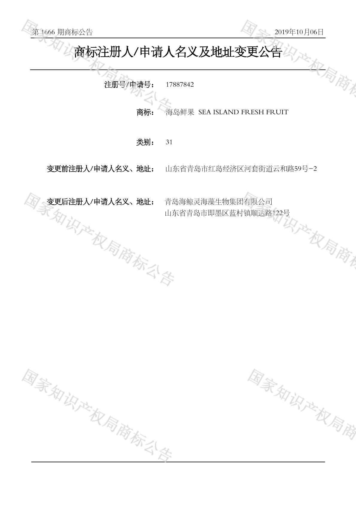 【海岛鲜果 SEA ISLAND FRESH FRUIT】商标详情