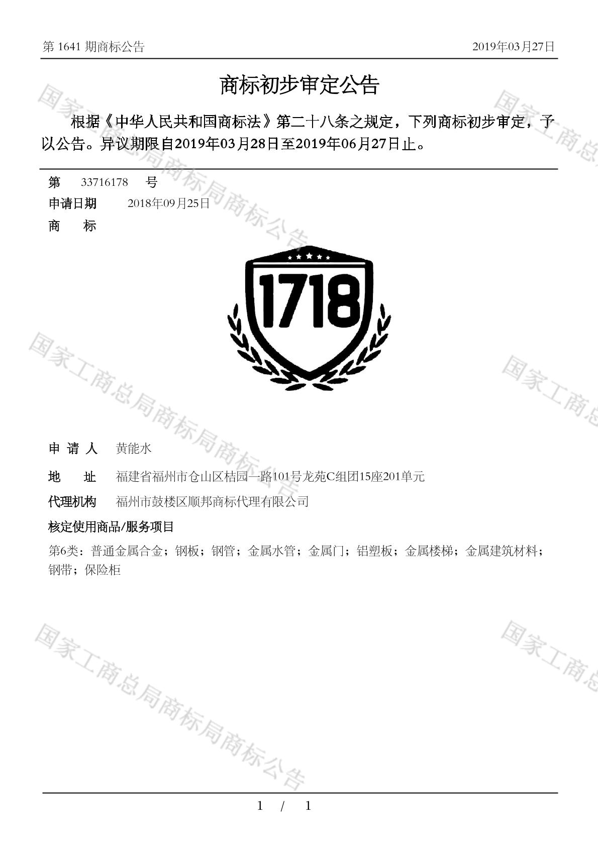 0601-普通金属合金;0601-钢板;0602-金属水管;0602-钢管;0603-金属建筑材料;0603-金属楼梯;0603-金属门;0603-铝塑板;0605-钢带;0611-保险柜 - 1641