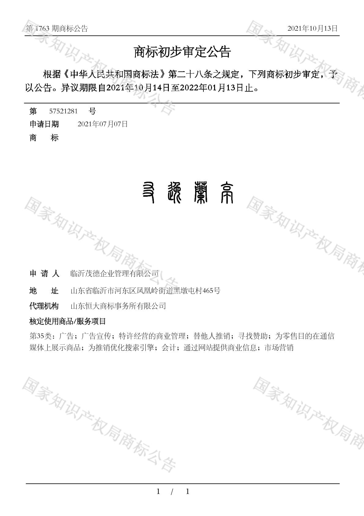 2021-08-01 商标注册申请 | 受理通知书发文