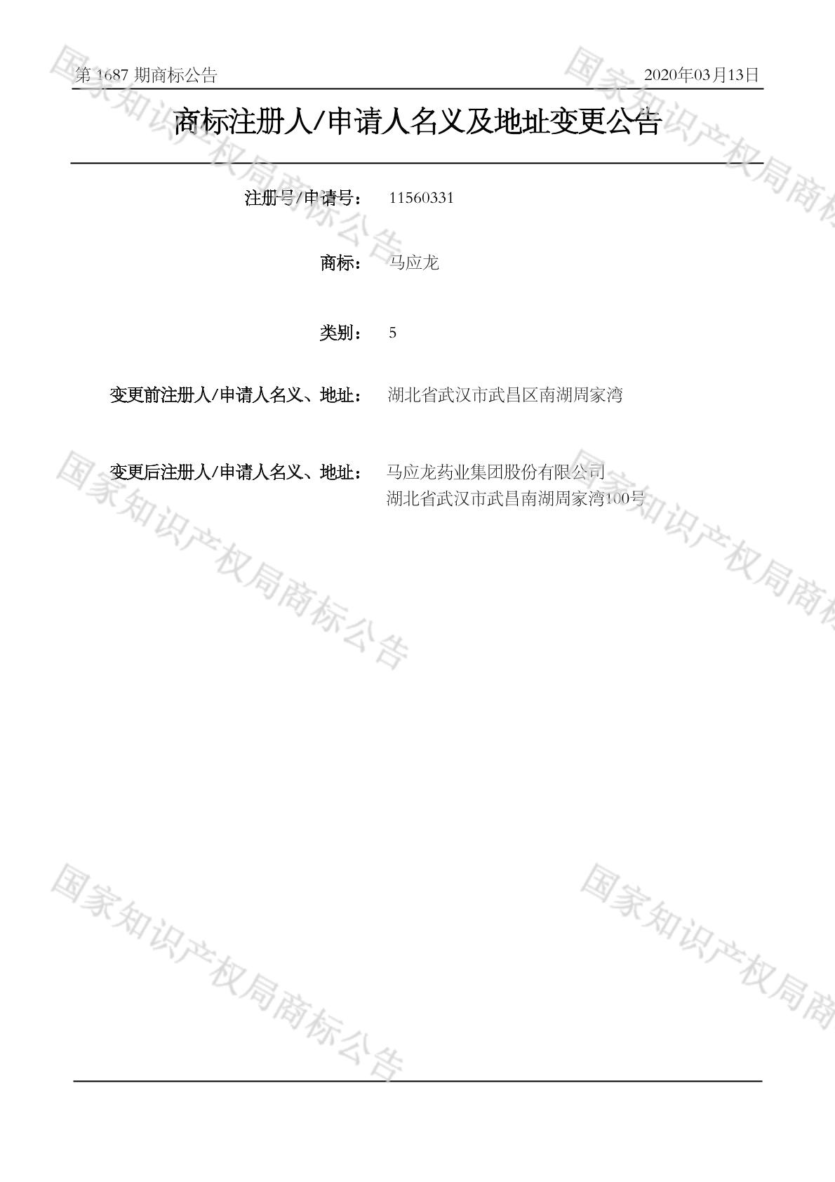 2020-02-27 变更商标申请人/注册人名义/地址 | 核准证明打印发送
