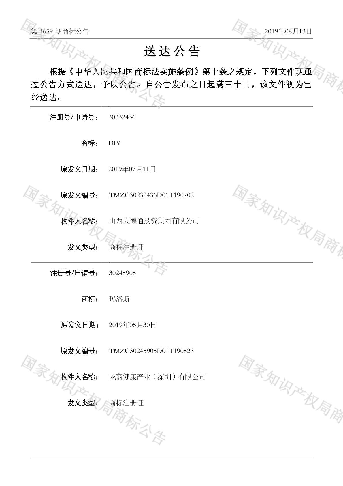 2019-09-23 商标注册申请 | 排版送达公告(商标注册证)