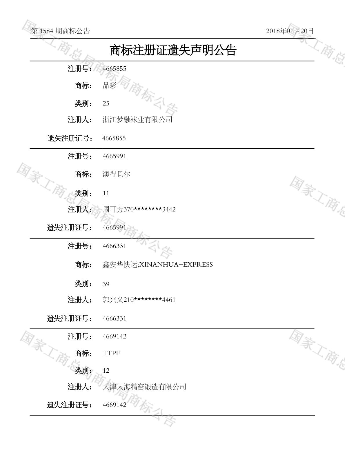 2018-01-16 补发商标注册证 | 注册证发文