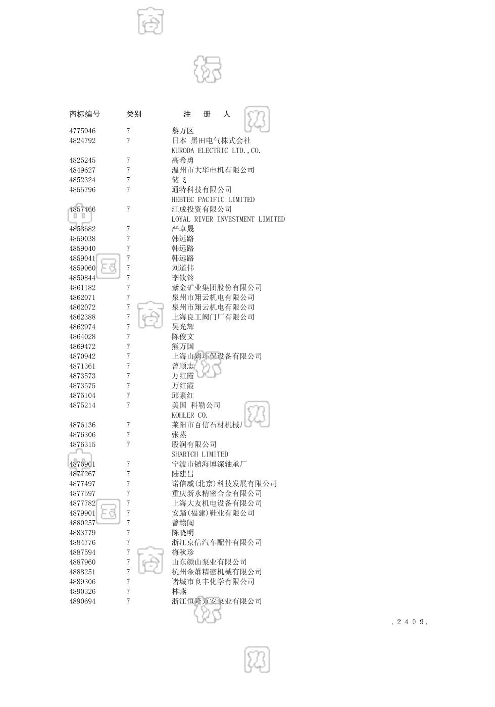 0701-农业机械;0705-印刷机器;0709-绞肉机(机械);0710-汽水制造设备;0723-家用电动搅拌机;0733-搅拌机(建筑);0738-汽油机;0747-涂漆机;0749-泵(机器);0753-搅拌机 - 1133