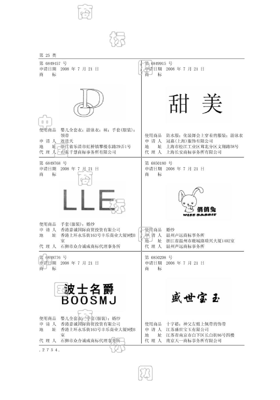 2501-服装;2502-婴儿全套衣;2503-游泳衣;2507-运动鞋;2507-鞋;2508-帽;2509-袜;2510-手套(服装);2511-领带;2512-腰带 - 1221
