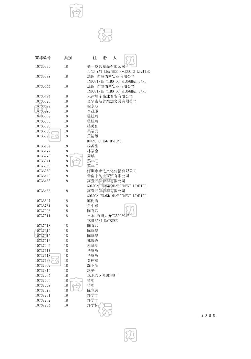 1801-动物皮;1802-家具用皮装饰;1802-手提包;1802-皮制系带;1802-背包;1804-伞;1805-手杖;1806-鞍具;1806-马具配件;1807-制香肠用肠衣 - 1351