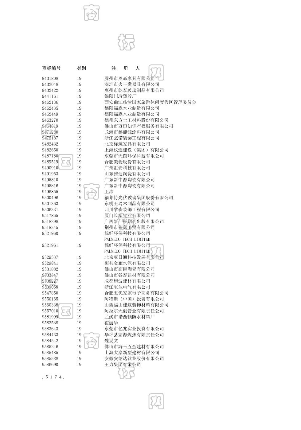 1901-木材;1902-大理石;1902-建筑灰浆;1902-石灰浆;1903-石膏;1904-水泥;1908-防水卷材;1910-非金属建筑物;1913-修路用粘合材料;1913-石料粘合剂 - 1312