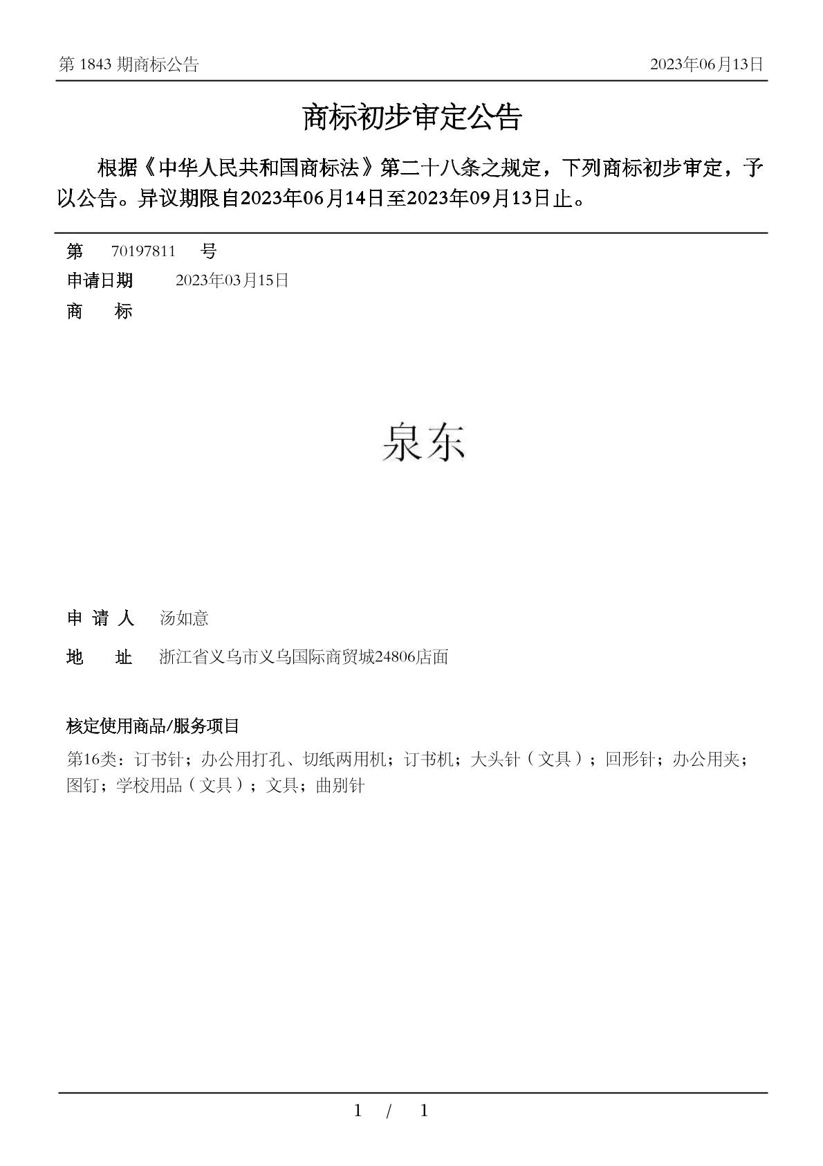 【泉东】商标详情