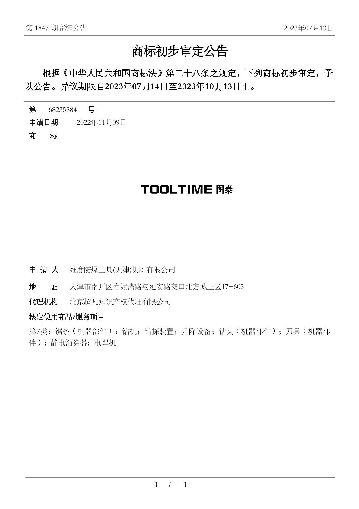 【TOOLTIME 图泰】商标详情