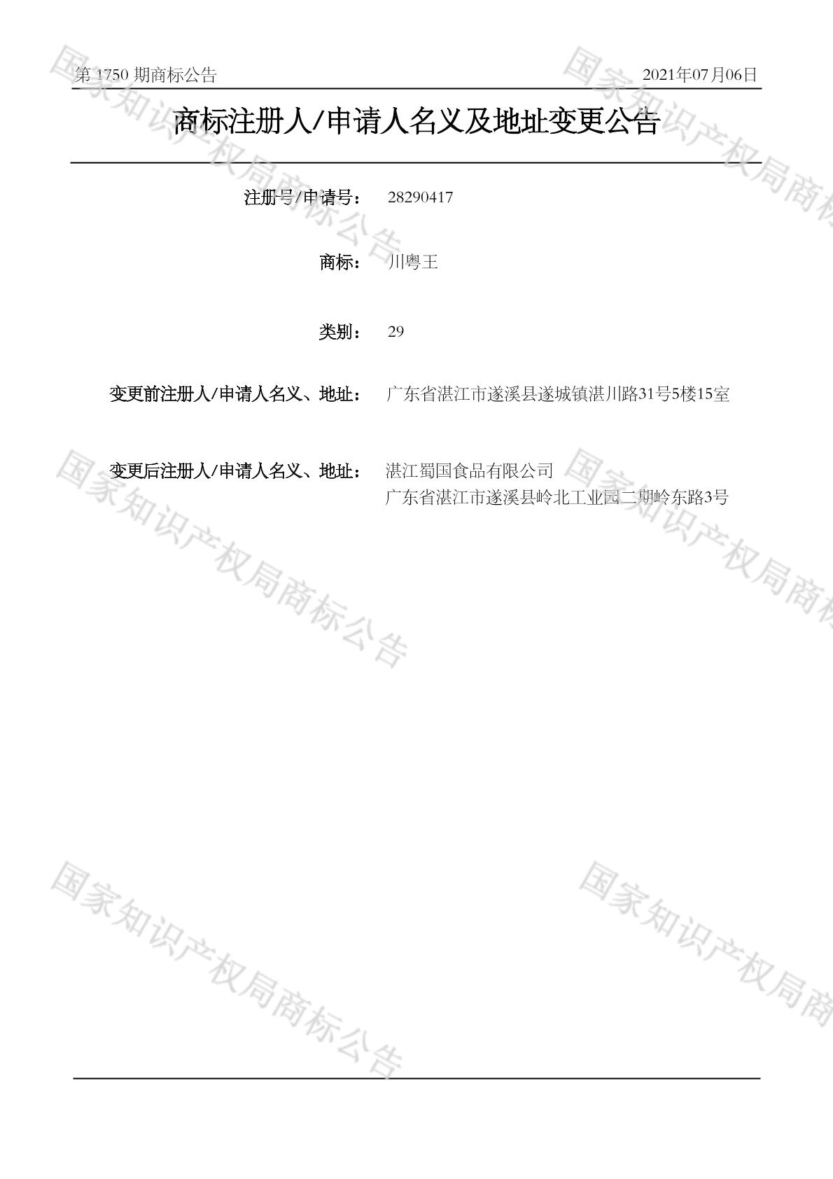 2021-07-02 变更商标申请人/注册人名义/地址 | 核准证明打印发送