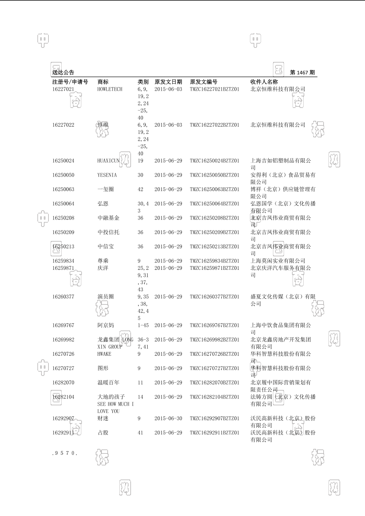 2015-08-14 商标注册申请 | 排版送达公告(商标注册申请补正通知书)