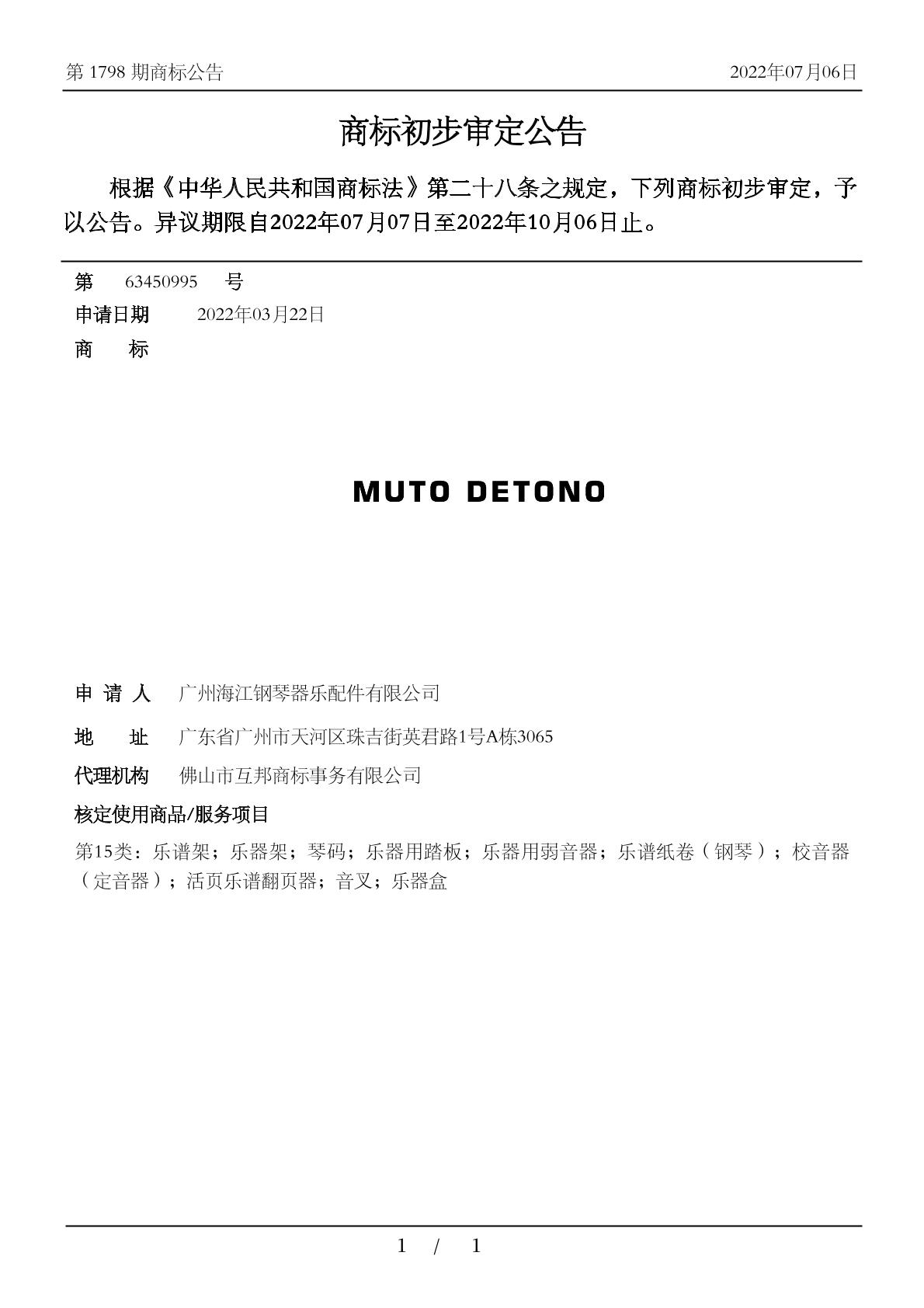 【MUTO DETONO】商标详情