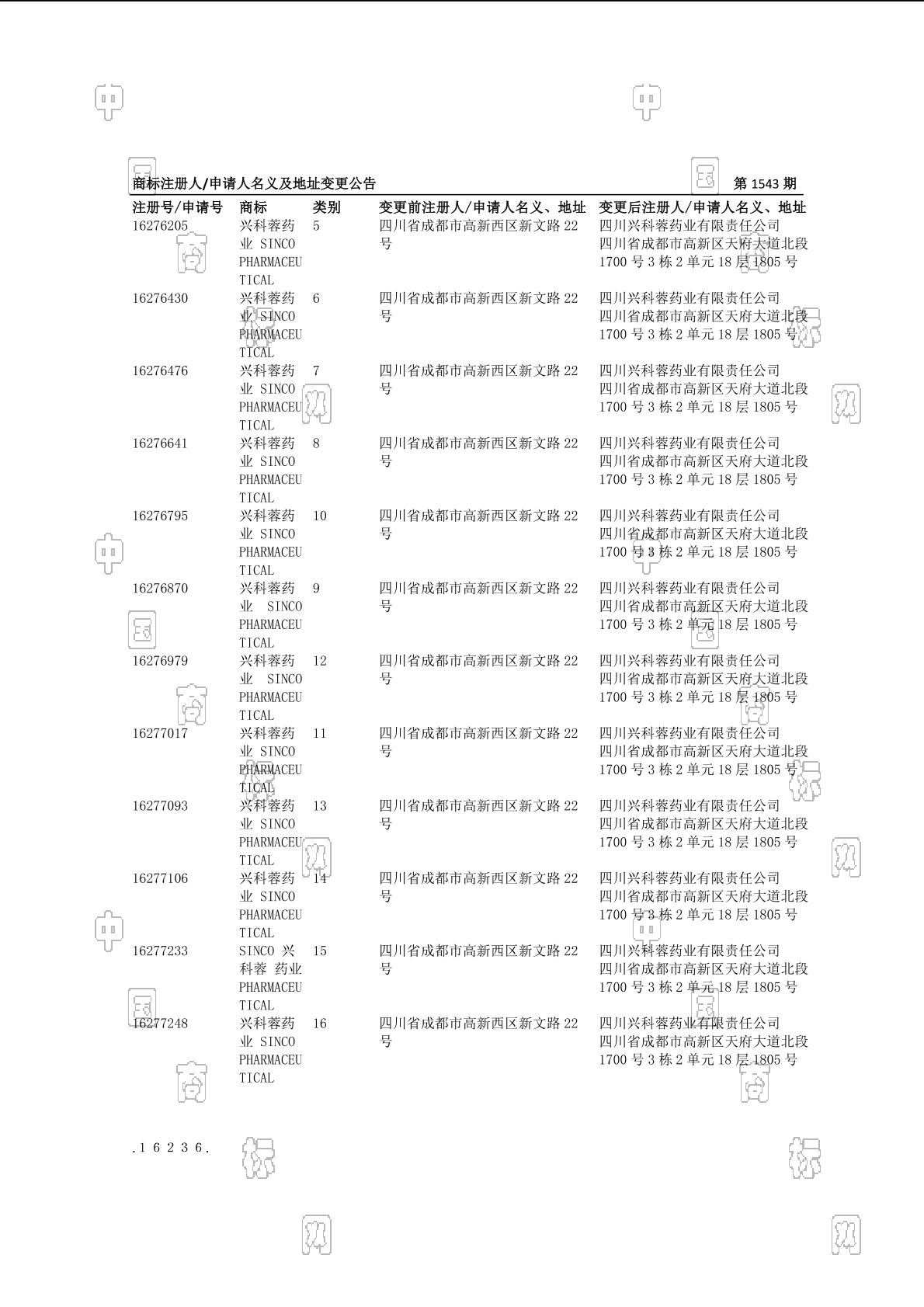 【兴科蓉药业 SINCO PHARMACEUTICAL】商标详情