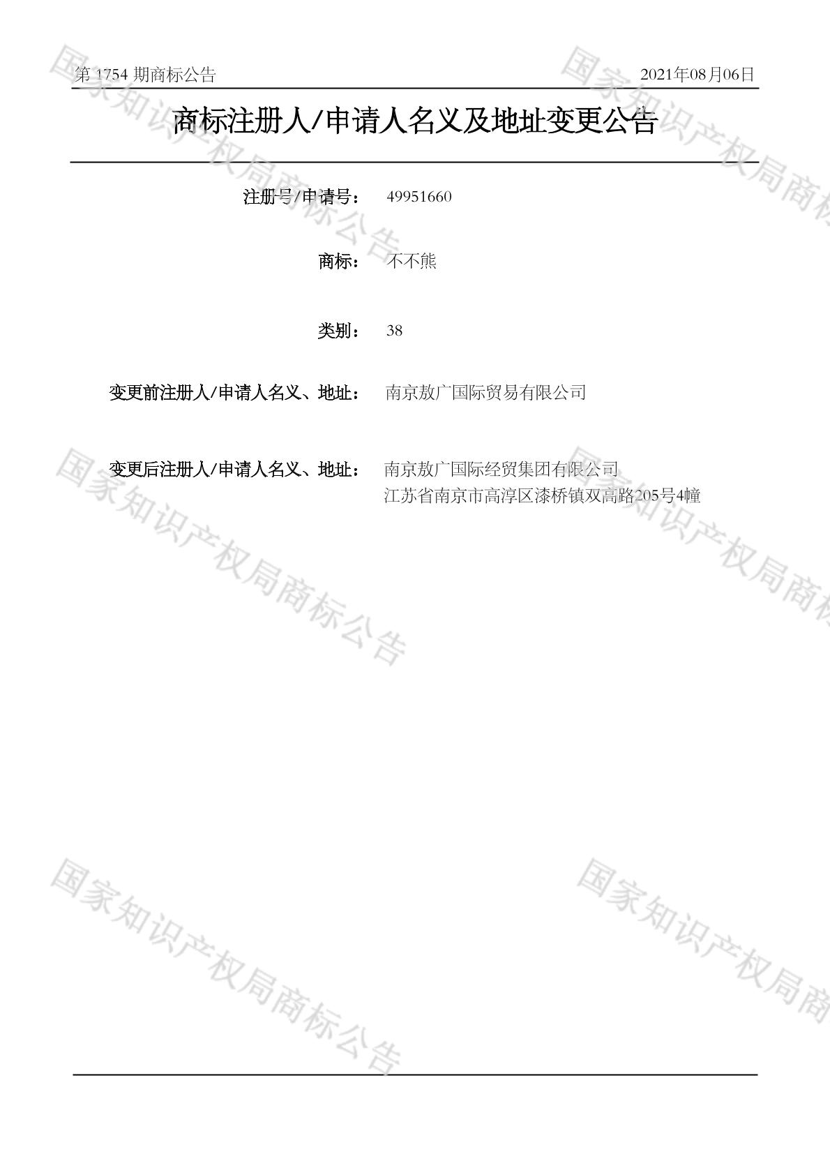 2021-08-03 变更商标申请人/注册人名义/地址 | 核准证明打印发送