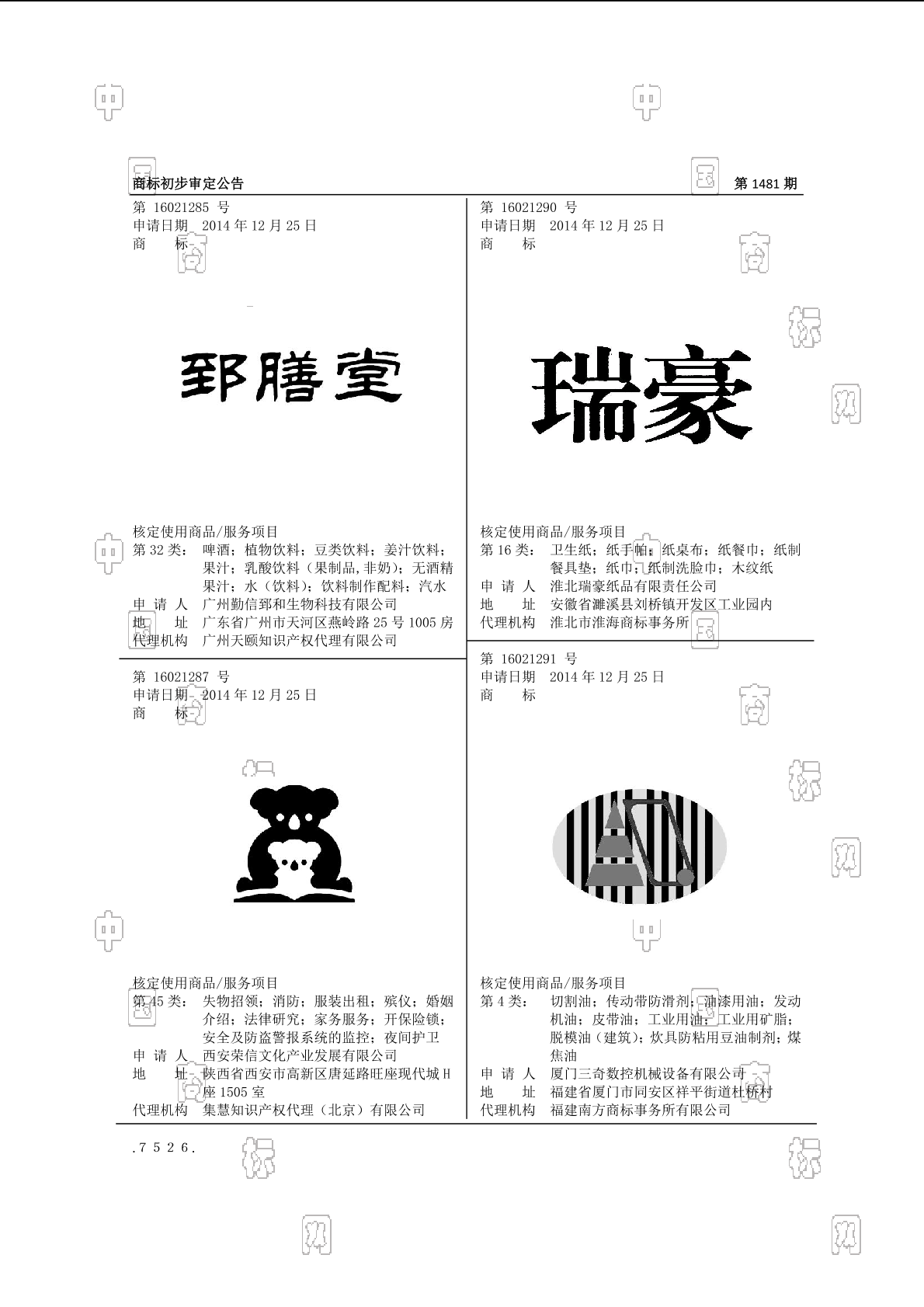 2016-06-27 商标注册申请 | 领退信管理(商标注册证)