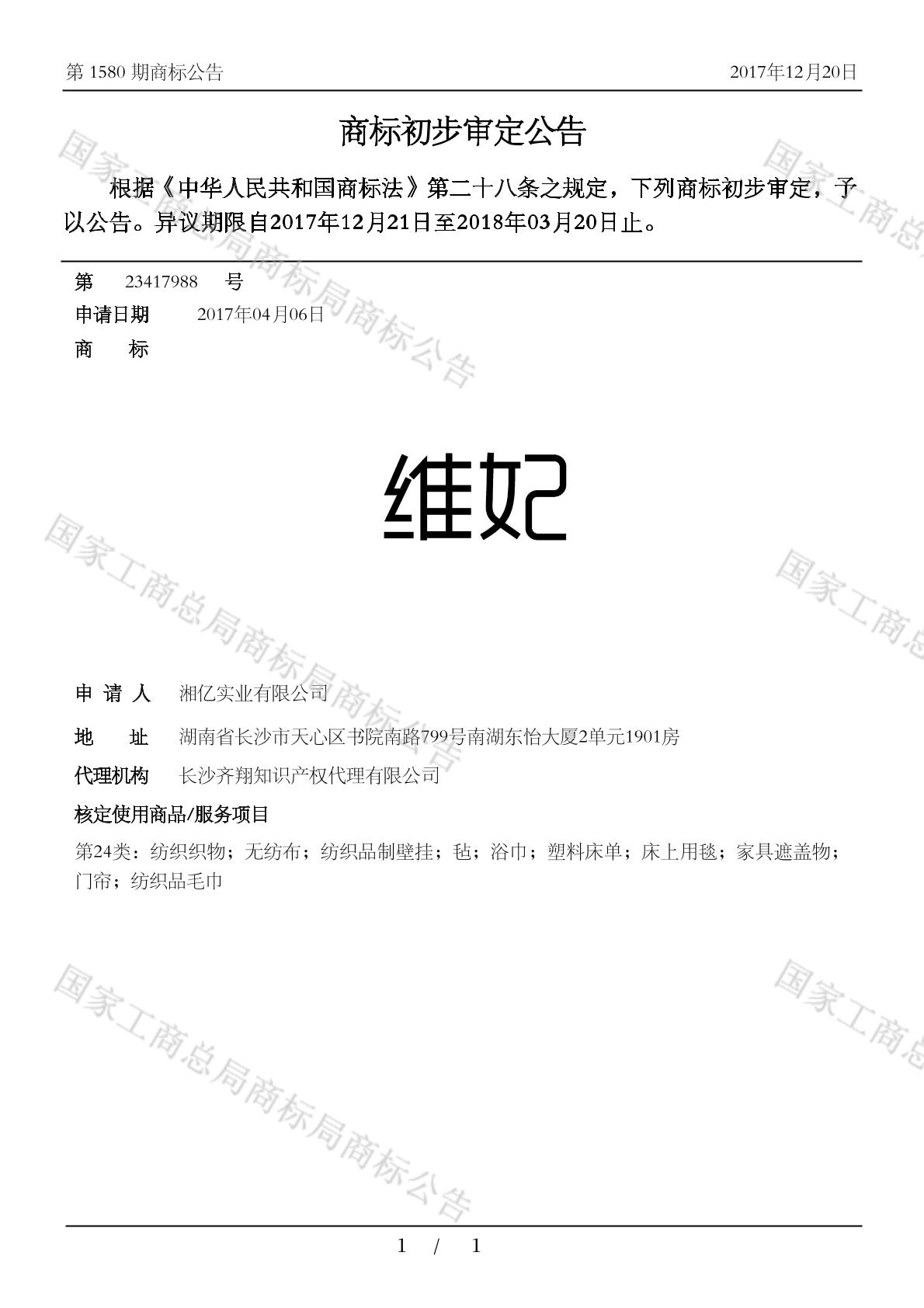 2401-纺织织物;2402-无纺布;2403-纺织品制壁挂;2404-毡;2405-浴巾;2405-纺织品毛巾;2406-塑料床单;2406-床上用毯;2407-家具遮盖物;2407-门帘 - 1580