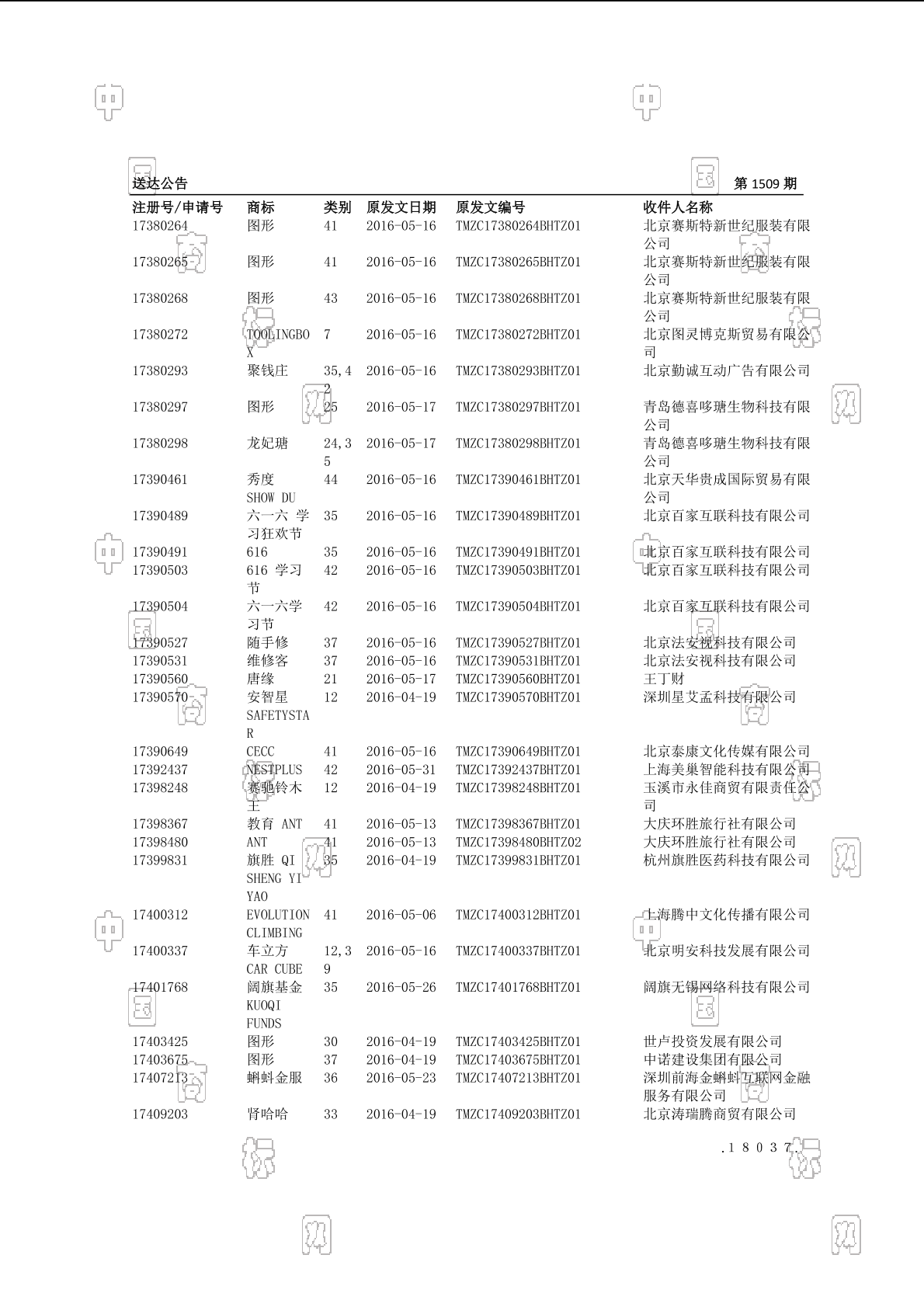2016-06-23 商标注册申请 | 排版送达公告(商标驳回通知书)